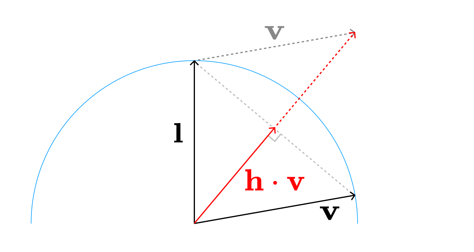그리고 $\mathbf{l}+\mathbf{v}$는 $2(\mathbf{h}\cdot\mathbf{v})$로 표현할 수 있다.