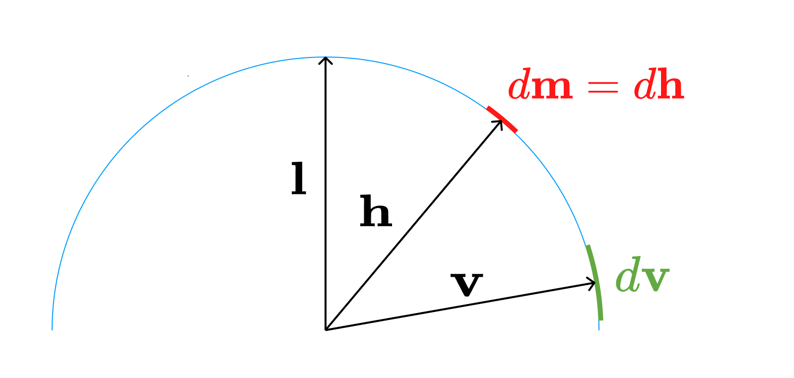 \[\operatorname{d}\mathbf{m}=\frac{\mathbf{h}\cdot\mathbf{v}}{\left\|\mathbf{l}+\mathbf{v}\right\|^2}\operatorname{d}\mathbf{v}\]